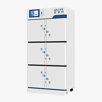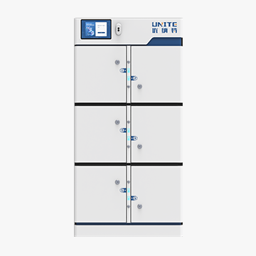 矩陣式物聯?;贩謪^(qū)柜包含四分區(qū)、六分區(qū),柜面配有可更換標簽,方便分類分區(qū)存放不同性質試劑,柜體柜門全部采用雙層鋼板構造。鎖具采用機械鎖+電控鎖,符合公安“五雙”管理規(guī)范,配有應急鑰匙可緊急開鎖。指示燈采用“泰卦”造型,柜體正常運作亮藍燈,柜門超時未關閉亮紅燈,并聲音提示。柜內均配備RFID掃描設備,可自主選擇單層或雙層,實現出入柜自動記錄,內置風道設計,多風道獨立對接。