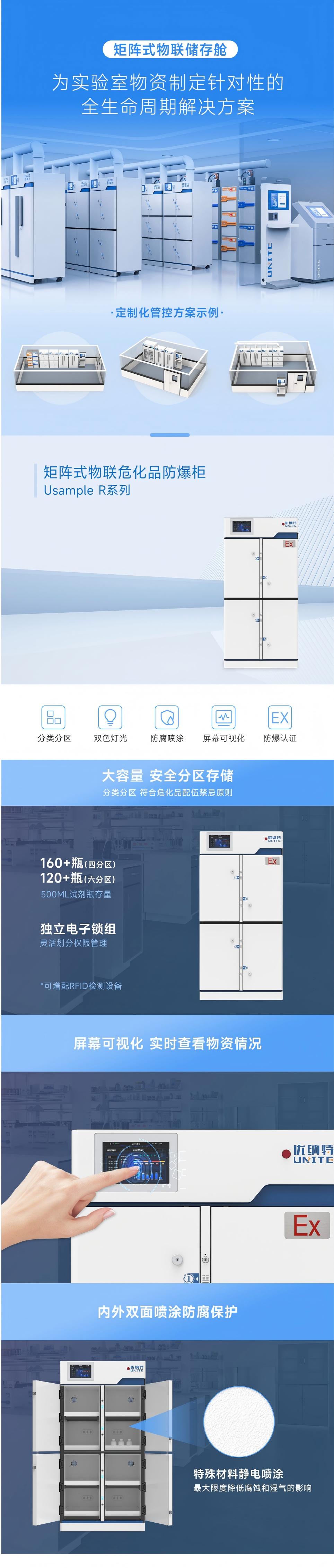 矩陣式物聯(lián)?;贩辣瘢衩媾溆锌筛鼡Q標(biāo)簽,方便分類分區(qū)存放不同性質(zhì)試劑,柜體柜門全部采用雙層鋼板構(gòu)造。鎖具采用機(jī)械鎖+電控鎖,符合公安“五雙”管理規(guī)范,配有應(yīng)急鑰匙可緊急開鎖。指示燈采用“泰卦”造型,柜體正常運(yùn)作亮藍(lán)燈,柜門超時(shí)未關(guān)閉亮紅燈,并聲音提示。柜內(nèi)均配備RFID掃描設(shè)備,可自主選擇單層或雙層,實(shí)現(xiàn)出入柜自動(dòng)記錄,內(nèi)置風(fēng)道設(shè)計(jì),多風(fēng)道獨(dú)立對(duì)接,獲批防爆合格證。